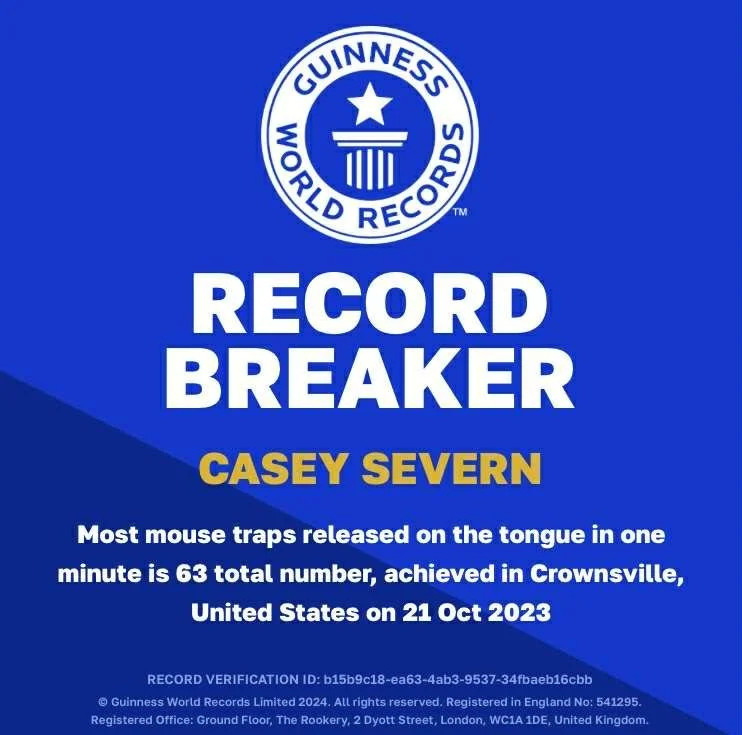 Record: Most Mousetraps Released on the Tongue in One Minute