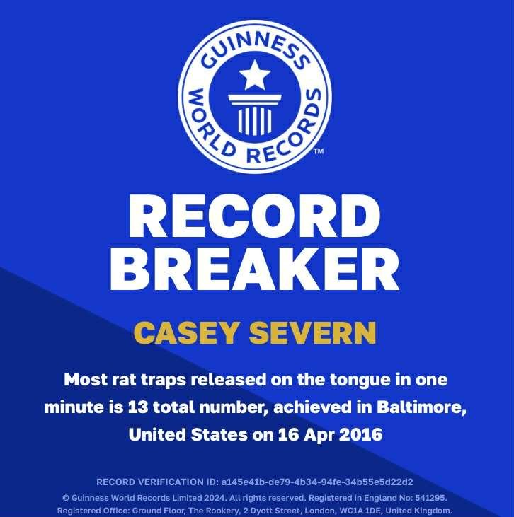 Record: Most Rat Traps Released on the Tongue in One Minute